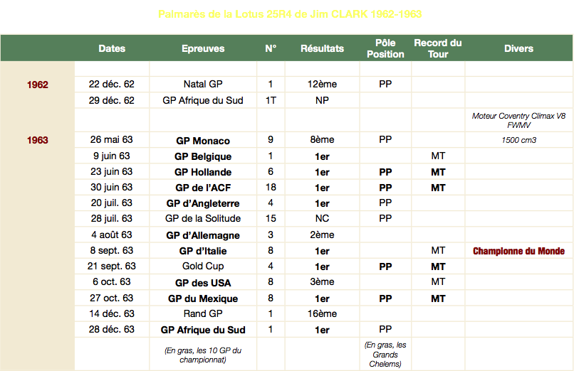 La mythique Lotus 25R4 de Jim Clark est apparue en 1962 au GP des Pays Bas à Zandwoort et a courue l’année 1963 avant d’être remplacée par la R6 en 1964.