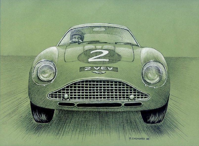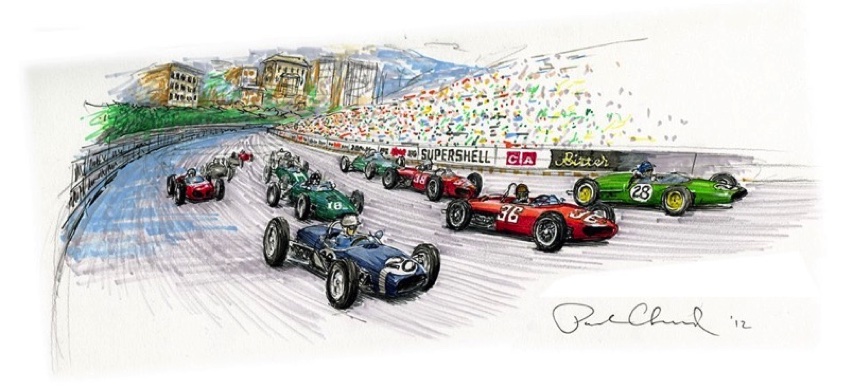 Paul Chenard est un vrai passionné d’automobile et de sport automobile : il collectionne les miniatures, les objets et réalise des toiles ou des dessins dont celui du GP de la Solitude.