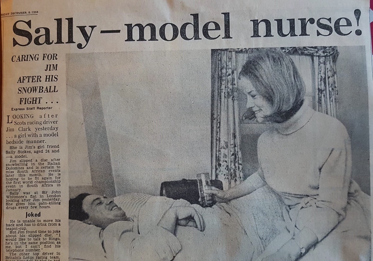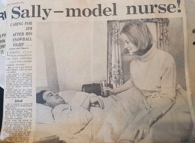 Sally Stockes la fiancé de Jim joue les nurse lors de son séjour à l'hôpital après la bataille de boules de neige à Cortina d'Ampezzo...