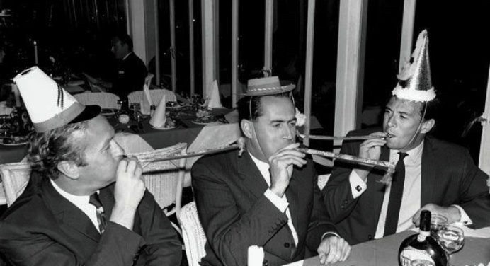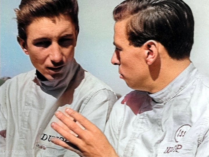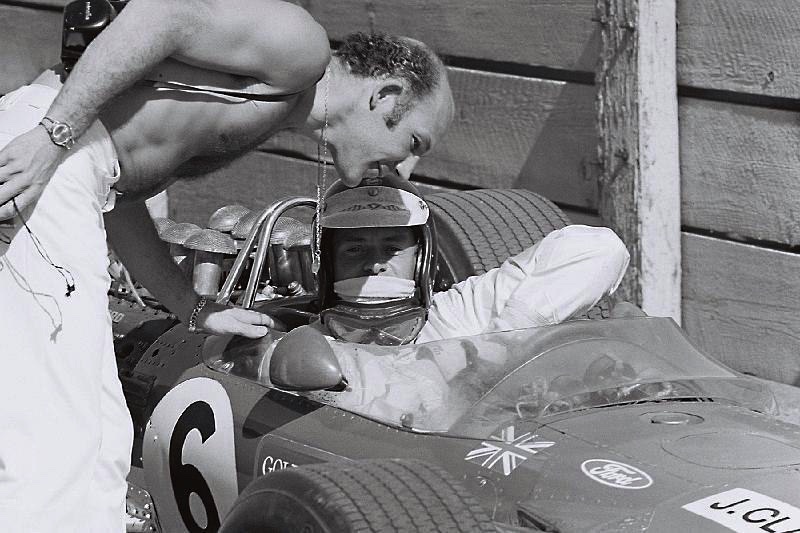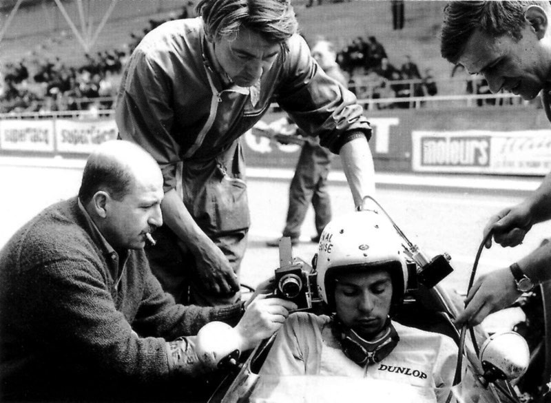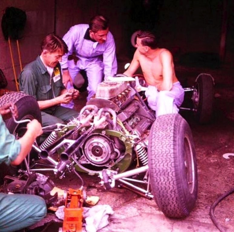 Cette année là, le GP d'Afrique du Sud a lieu à Kyalami le 2 janvier, les pilotes ont réveillonnés ensemble : Jack Brabham entre Jim et Colin Chapman !