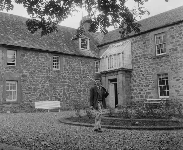 Jim Clark en kilt traditionnel chez lui en Ecosse