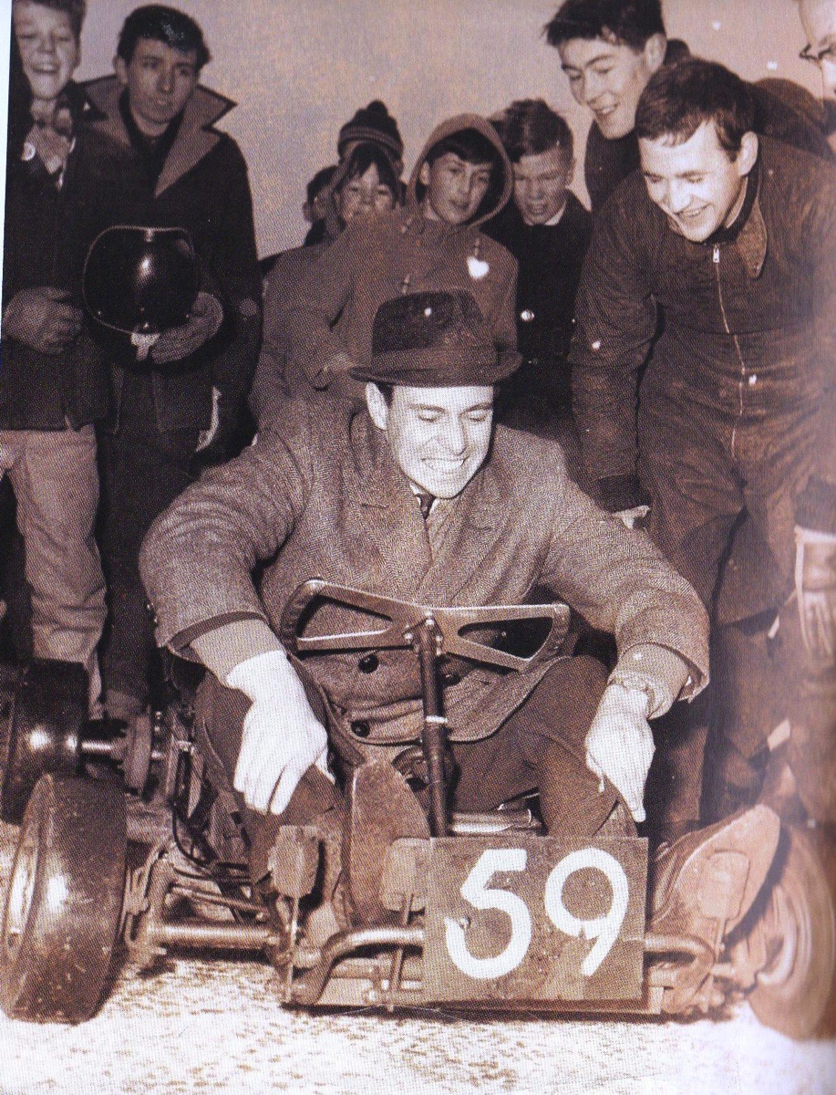 Jim Clark Champion du Monde 1964 fêter comme il se doit, en démonstration sur un go kart