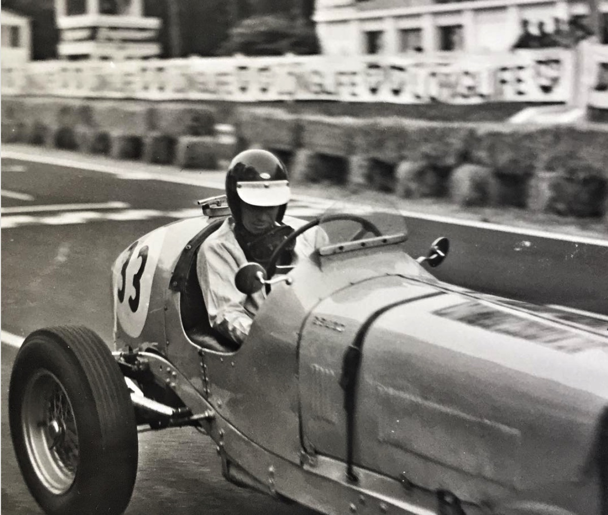Circuit de Rouen les Essarts 1964. A l'occasion du GP, Jim teste l'ERA du coureur Patrick Lindsay.