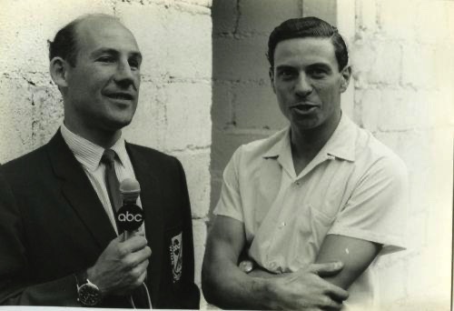 Le même journaliste à Indianapolis 1963 : vous aurez reconnu Stirling Moss venu encourager son ami Jimmy !