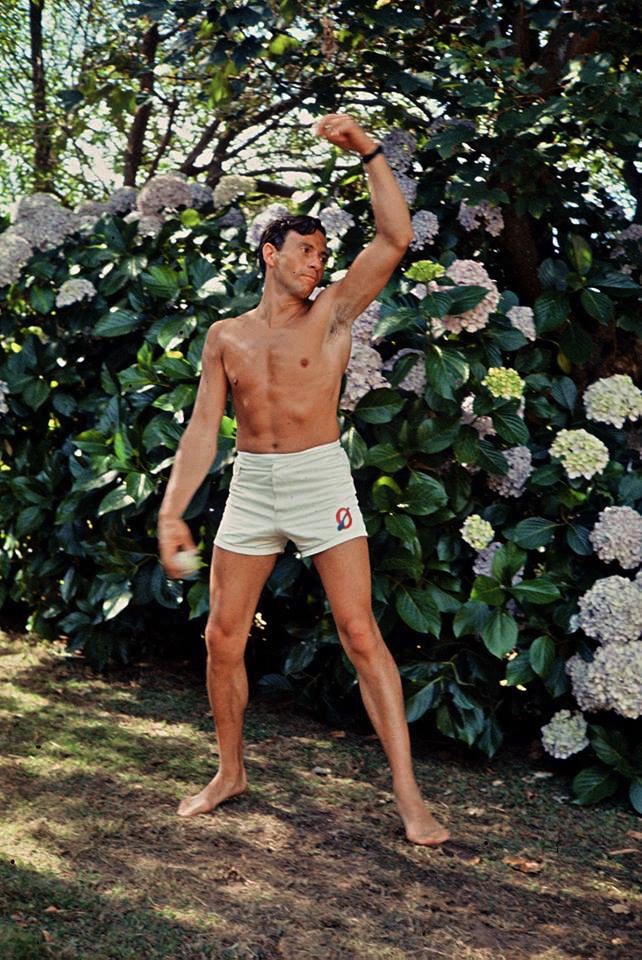GP de Syracuse 1964 : Colin entretient sa forme en attendant le départ sous l'oeil amusé des ùécaniciens et de Jimmy sur la Lotus 33...