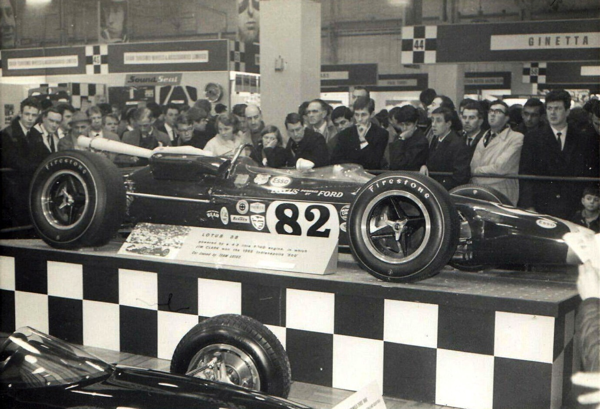 La Lotus 38 victorieuse aux mains de Jim Clark lors du London Car Show en 1966