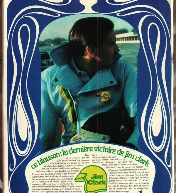 Photo de Jim Clark dans la revue "Virage Auto" de mai 1968.
