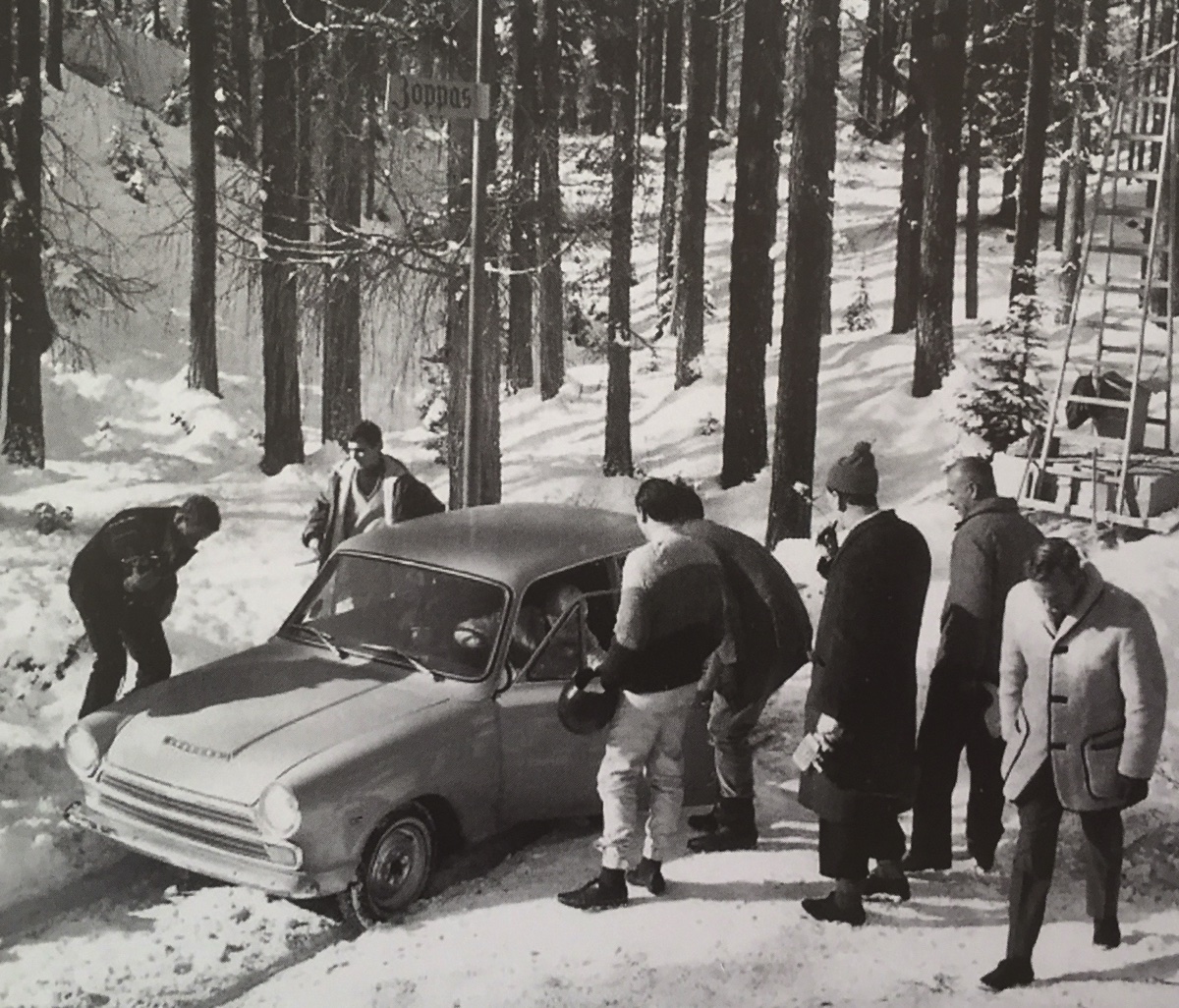 Jim emmène Walter Hayes, patron du département compétition de Ford pour un tour sur la piste de Bobsleight de Cortina d'Ampezzo !