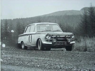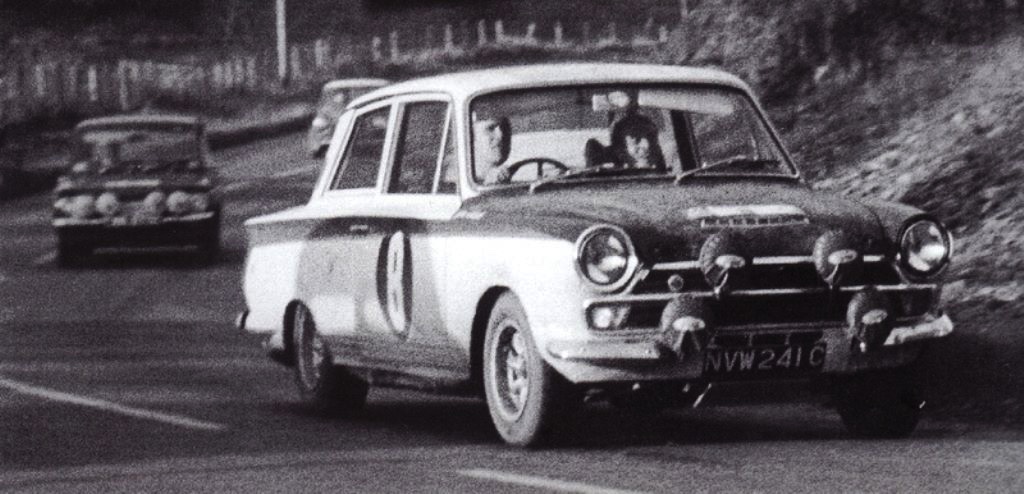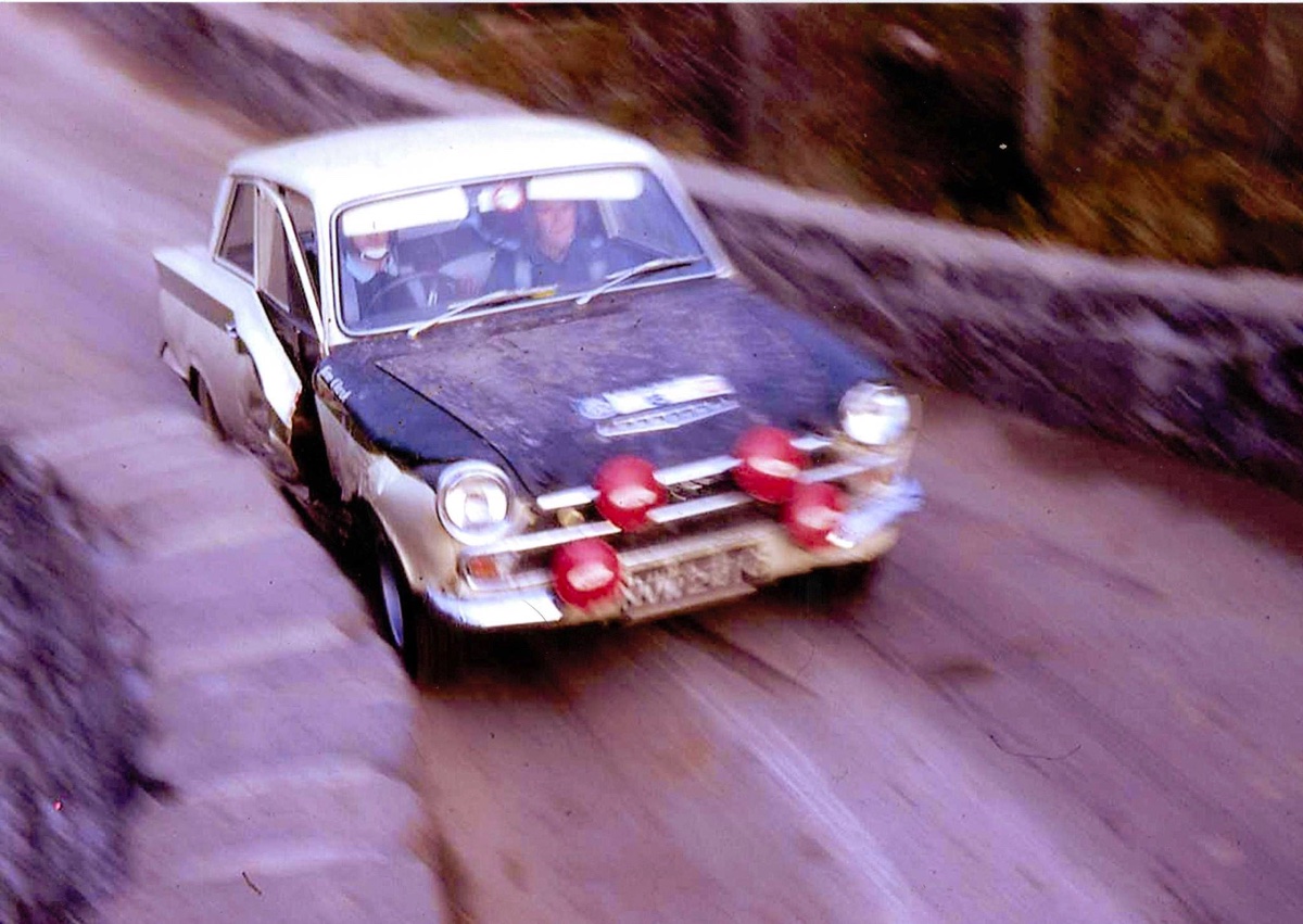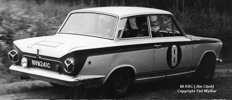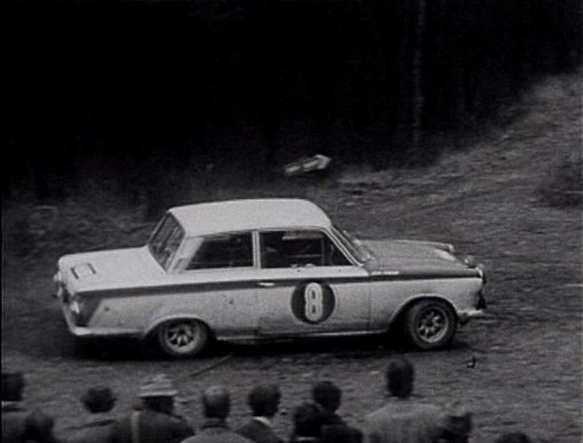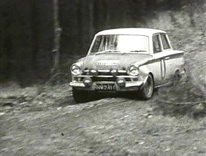 La Lotus-Cortina dans les bois du tracé du RAC 1966