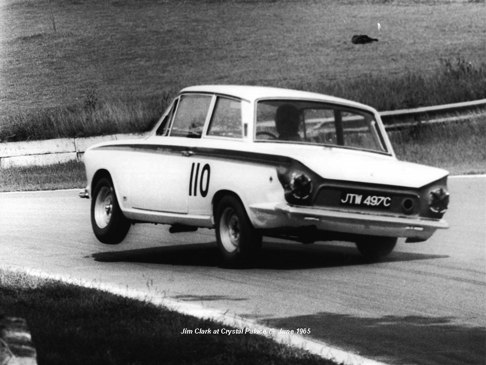 Jim sur 3 roues avec sa Cortina Lotus à Crystal Palace 1965