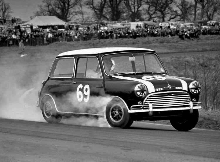 Jim s'amuse sur une Mini Cooper à Oulton Park en 1965