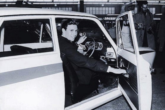 Jim dans la Lotus Cortina lotus sur un Salon en 1964