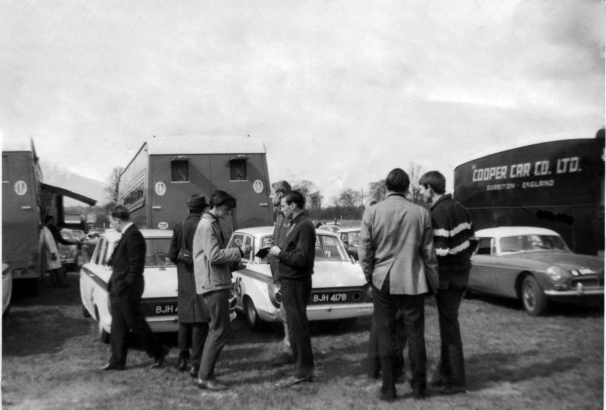 JIm en compagnie de John Withmore à Oulton Park 1964, signe des autographes