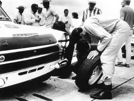 12 heures de Sebring 1964 en discussion avec son coéquipier Rays Parson