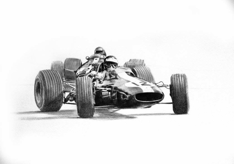 Il peint et dessiné JIm Clark et d'autres pilotes de la même époque mais pas que, il peint ausssi très bien les avions et les nus !
