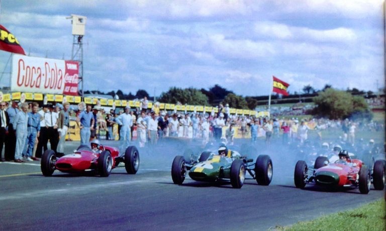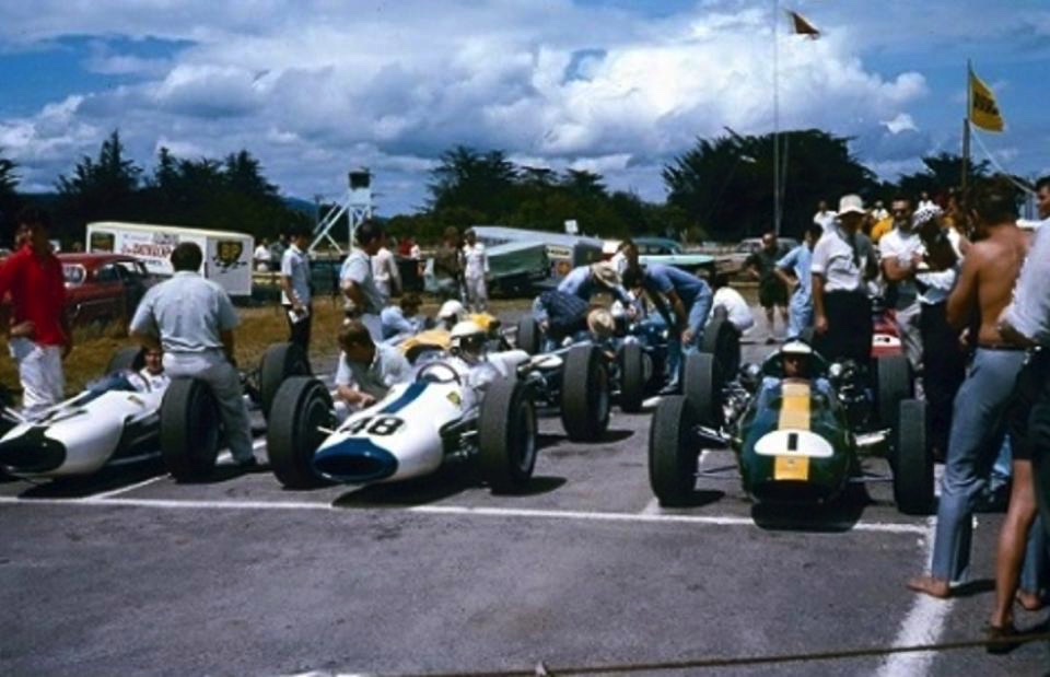 JIm Clark, Phill Hill, (N°48) et Bruce Mclaren au départ de Levin Cup