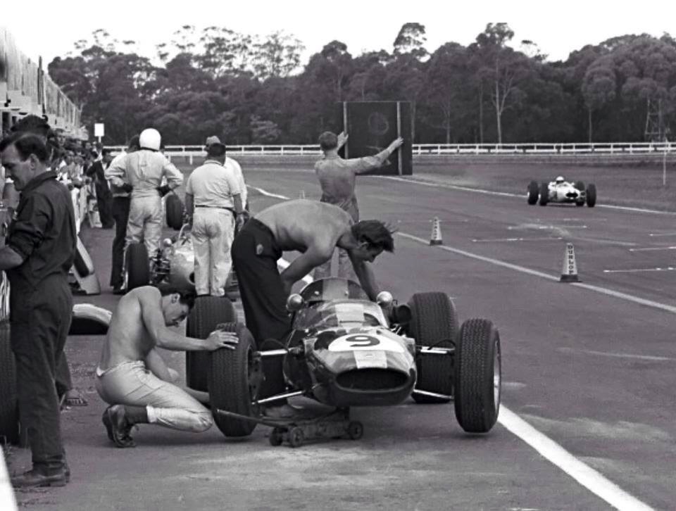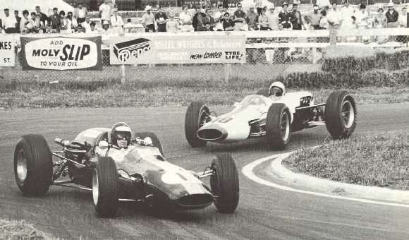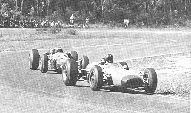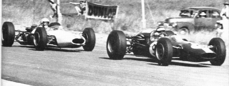 Jimmy devant le coureur Local Franck Matich sur sa Brabham BT 7A