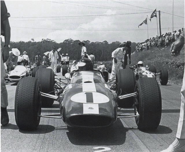 Longford en Autralie, septième manche, Jim finit 5ème derrière Bruce McLaren, Jack Brbham, Phill Hill, Graham Hill, de vieilles connaissances !