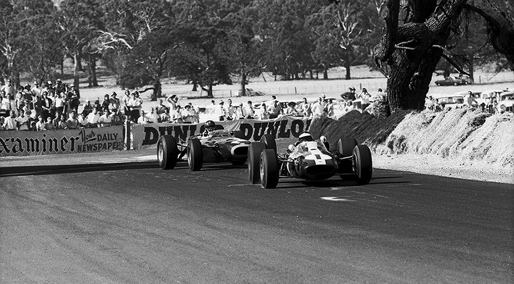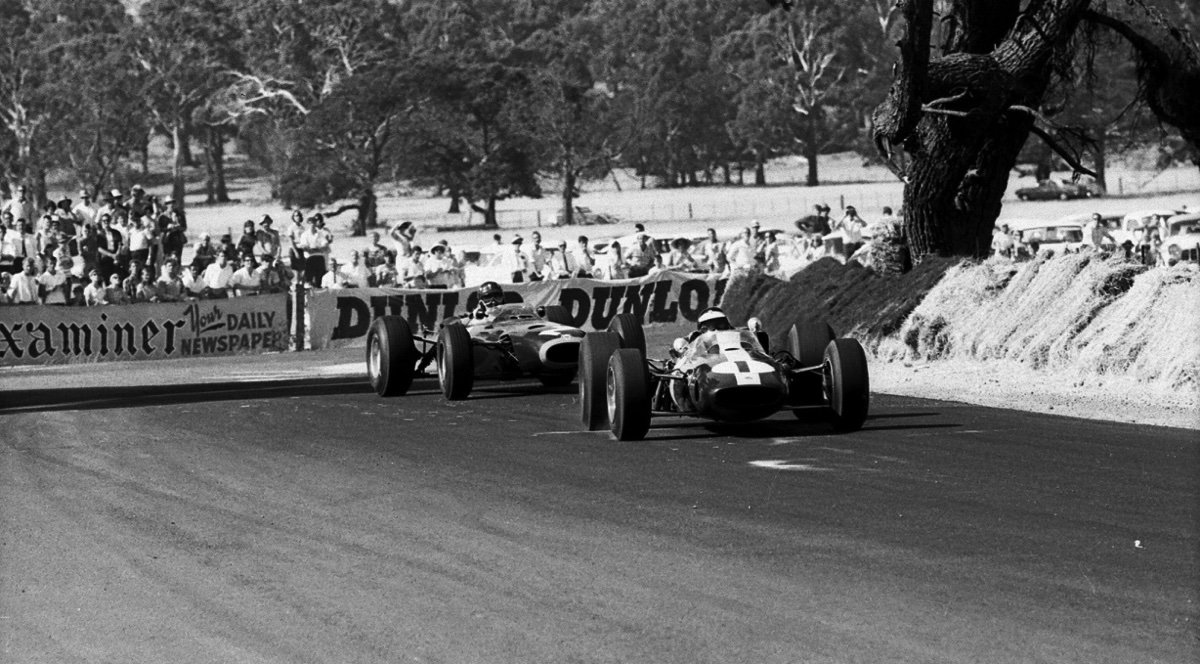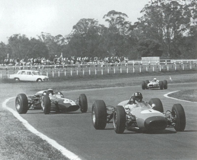 JImmy devant Spencer Martin, courreur local sur une Brabham BT 11