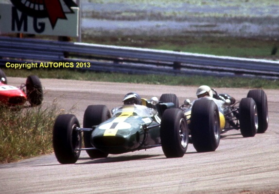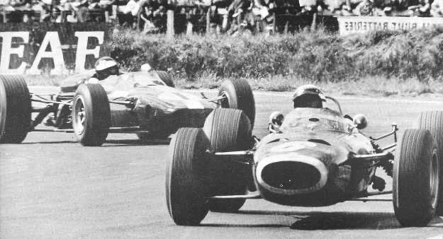 JIm sur la Lotus 39 devant Graham Hill sur la BRM P261