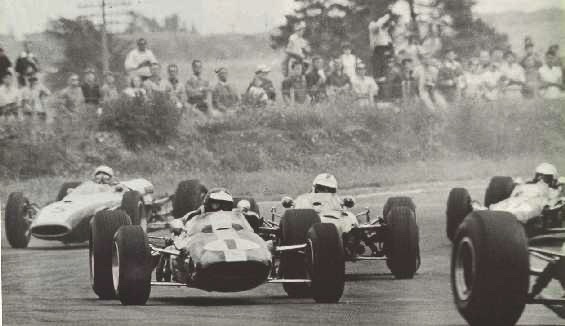 Bruce McLaren, Jack Brabham, et Graham Hill tandis que Jim est en seconde ligne auccôtésde Franck Gardner
