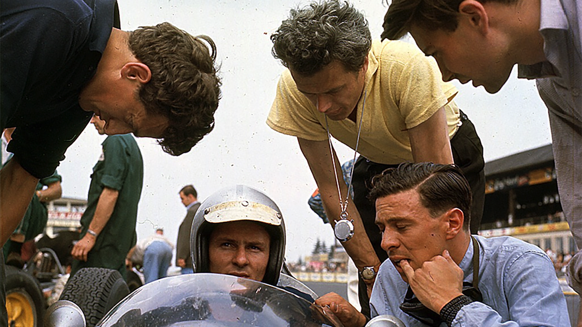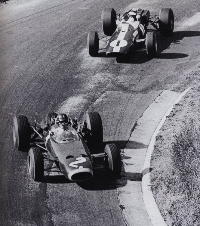 JIm en tête devant Phill Hill sur sa Cooper